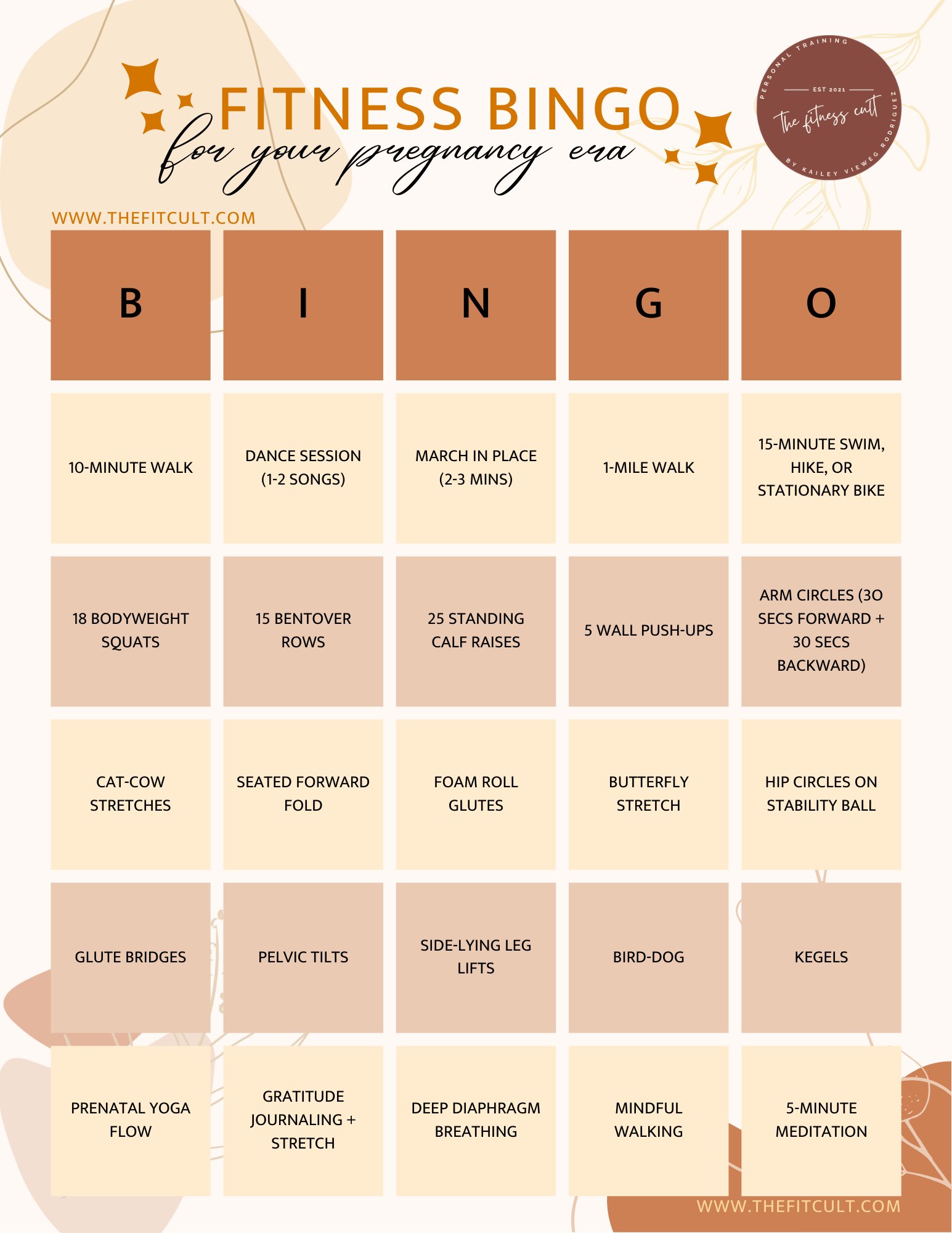 Adjust the intensity based on how you feel each day, your trimester (if applicable), and your comfort level. If you would like a tailored approach to fit your schedule, energy levels, and stage of motherhood safely, I’d love to help you design a personalized program that keeps you moving and confident this season!